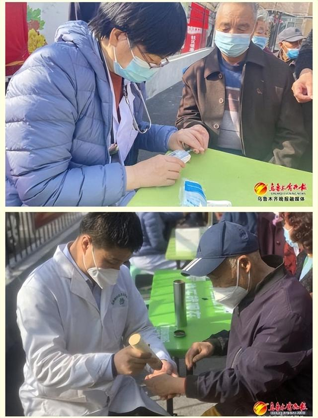 义诊现场,医疗服务队早早地将检查的医疗设备摆放在社区门口,居民们纷纷排起了长队,医务人员先为居民讲解了预防、保健、治疗等中医知识。医生们也在现场为居民开展了中医灸疗、测量血压、按摩推拿、听诊等服务活动。