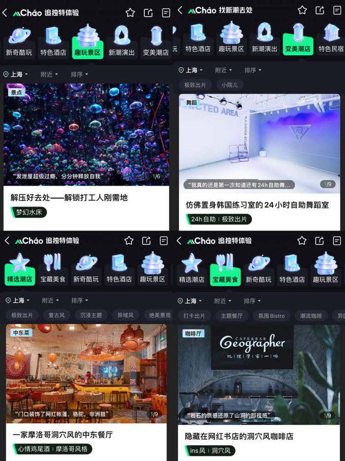 据了解,近期,魔术旮旯俱乐部作为新奇潮店,还入选了大众点评“MChao”频道。而在大众点评“MChao”频道,人们不仅能看到“不去死海也能体验零重力漂浮”的身心解压冥想健康中心,也能看到挑战世界top的室内攀岩墙,还有各种沉浸的展览……