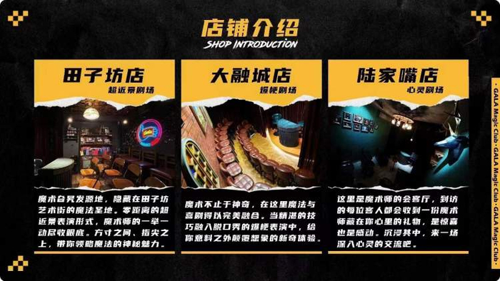 李凡说,从上海的田子坊,到浦东陆家嘴八佰伴附近、长宁大融城分别开店,也是在进行不同的尝试。田子坊店定位是超近景的魔术剧场,魔术师的一举一动尽收眼底,方寸之间,指尖之上,带观众领略魔法的神秘魅力;大融城店更多定位是爆梗剧场,让魔术和喜剧融合,融入脱口秀的爆梗表演,给消费者带来意料之外颠覆想象的新奇体验;而陆家嘴店是心灵剧场,到访的每一位客人都会收到魔术师“藏在观众心里的礼物”。