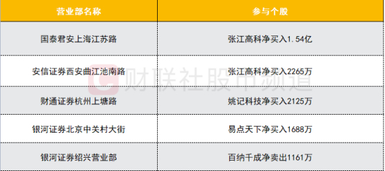 一线游资活跃度较低,光刻胶概念股张江高科获两家一线游资席位买入,其中国泰君安上海江苏路席位买入1.54亿。