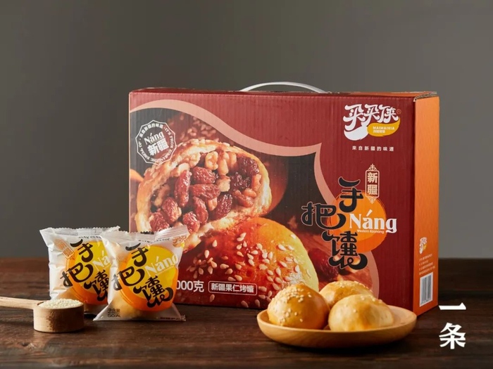 既有传统的烤馕,也有升级改良配方和口感的手把馕、切糕馕等,外香里酥,好吃不腻,来自新疆本土品牌“买买侠”。