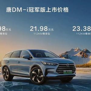虽然唐DM-i冠军版的官方起步价格相比老款车型没有变化,但入门级车型略有增配,多出了悬架软硬调节、方向盘离手检测等。21.98万元的尊荣版比入门级的尊贵版高1万元,配置上多出并线辅助、开门预警、后方碰撞预警、倒车车侧预警、丹拿音响、环境氛围灯等;它的配置水平要略低于22.68万元的老款尊荣版。23.38万元的尊享版是唐DM-i冠军版的旗舰车型 ,比老款尊荣型价格高7000元,配置上也稍有提升,如多出了HUD抬头显示、悬架软硬调节等。