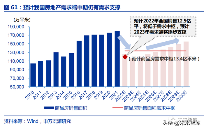 我们认为,对比日本 90 年代房地产行业,我国中长期需求仍有支撑,但政策仍需更加 积极,尤其是供给端的修复政策。我国房地产目前需求端呈现出超跌状态,供给端处于过 度出清状态,预计随着供给缓慢修复,中期销售将向着需求中枢 13.4 亿平逐步回归,但考 虑到短期供需双弱,短期销售仍将呈现“L”型总量弱复苏、但结构强弹性,而其中后续房 地产行业供给端的修复也显得非常关键。