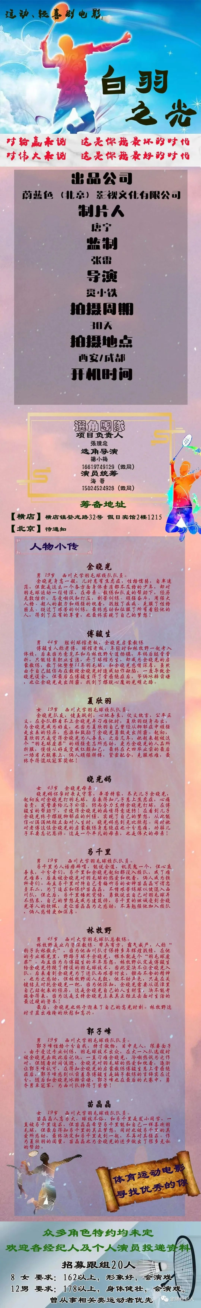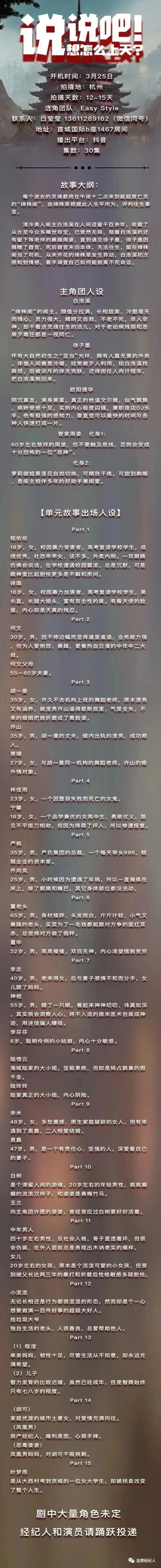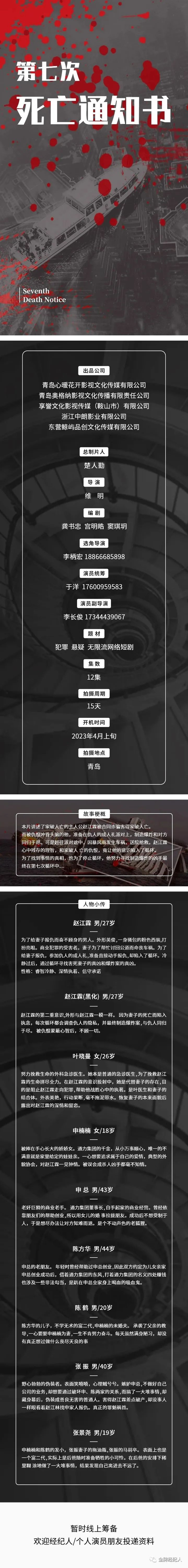 本栏目组讯由小编采集并供业内参考交流使用,信息内容如有变化请根据实际情况核实。各大剧组如有组讯发布,可以联系金牌经纪人,协助扩散!