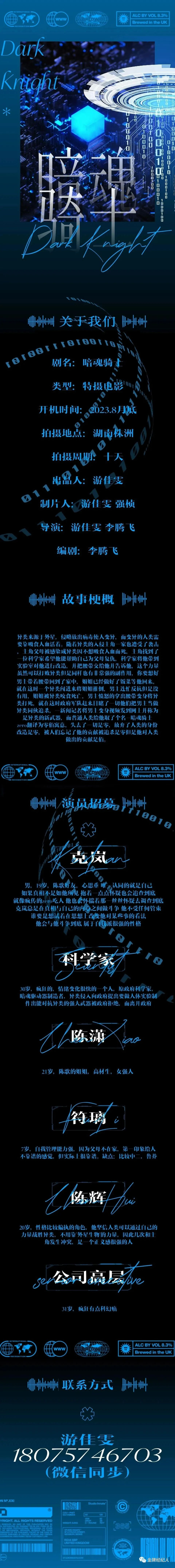 主创阵容:出品人:邵伟、总制片人:白路、制片人:洪志彬、导演:黄麒、编剧:异度侠