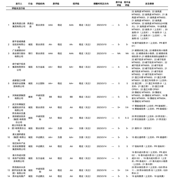本文摘自:2023年3月20日已经发布的《中国信用债评级调整周报》