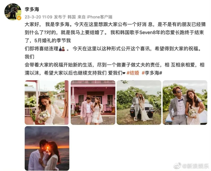 得知李多海的喜讯,不少粉丝也发文祝福:“两人去年上节目受访,想来也是确定了婚期才会公开撒狗粮,真是浪漫满满!祝福爱情甜蜜!”
