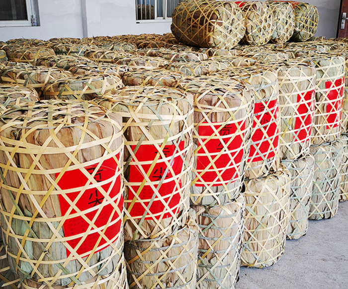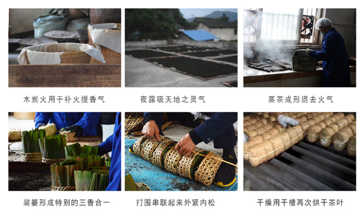 制作成功后的成品茶,都是由当地天然的箬叶包起,再放入竹条编制的竹篓之内。