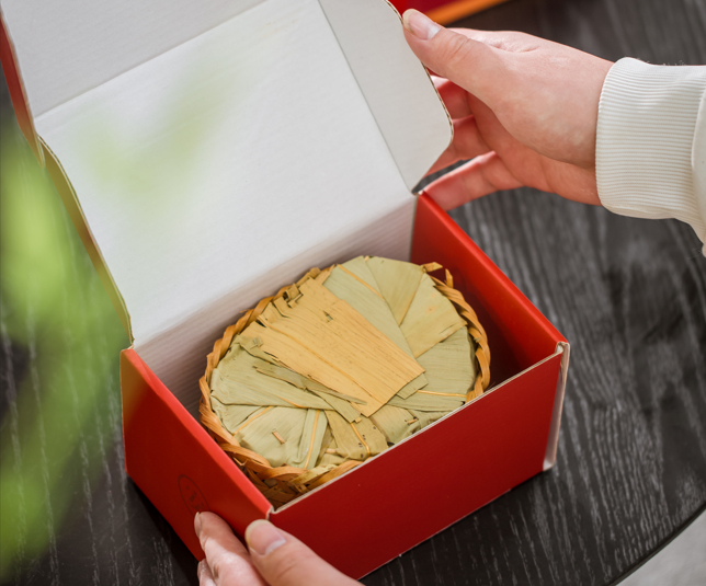 每一个,都是手工打包。箬叶有利于隔潮、防尘、防异味,实用又古朴大雅。生于自然,制于双手,内沾晨露,外附竹香。
