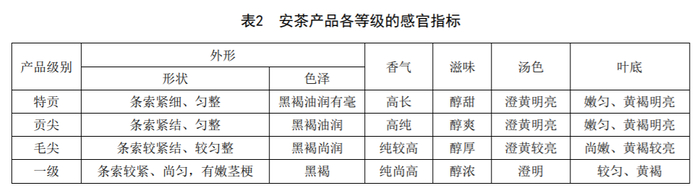 安茶分为4个等级,按品质差异,分为特贡、贡尖、毛尖、一级。