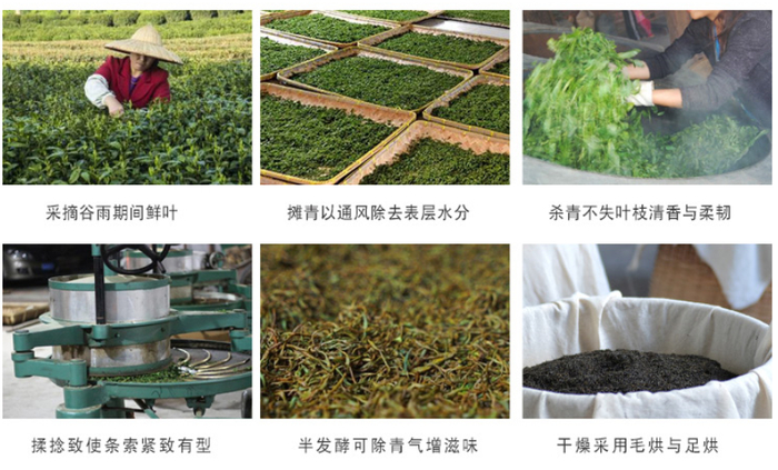 从采茶开始,就有讲究。必须在谷雨时节采摘,经过杀青、捻揉、摊晒、干燥四道工序完成初制。