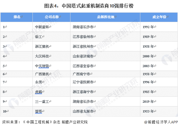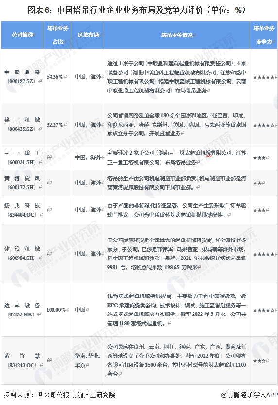 4、中国塔吊行业企业布局及竞争力评价