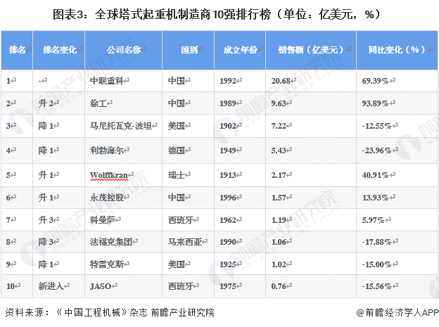 2、中国塔吊行业市场排名