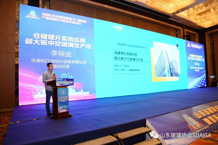 济南利江自动化有限公司李保金副总经理为大家分享首台套《仓储理片系统应用及超大板中空玻璃充气线》企业研发为产品质量高质量发展助力。