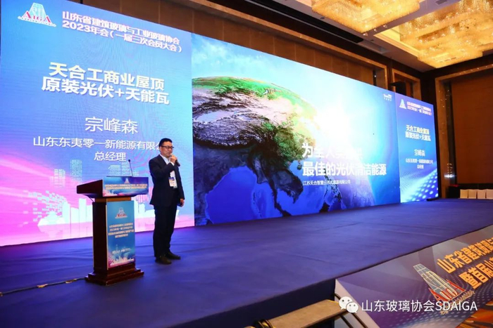 山东东夷零一新能源有限公司宗峰森总经理为大家分享《天合工商业屋顶原装光伏+天能瓦》太阳能新能源的开发与利用,分享了未来新能源运用趋势及太阳能光伏屋顶的领先新技术应用。
