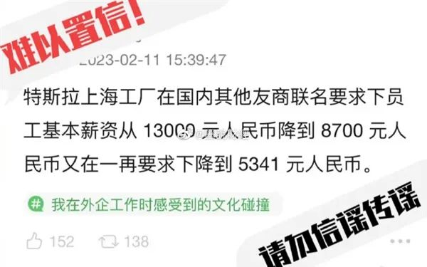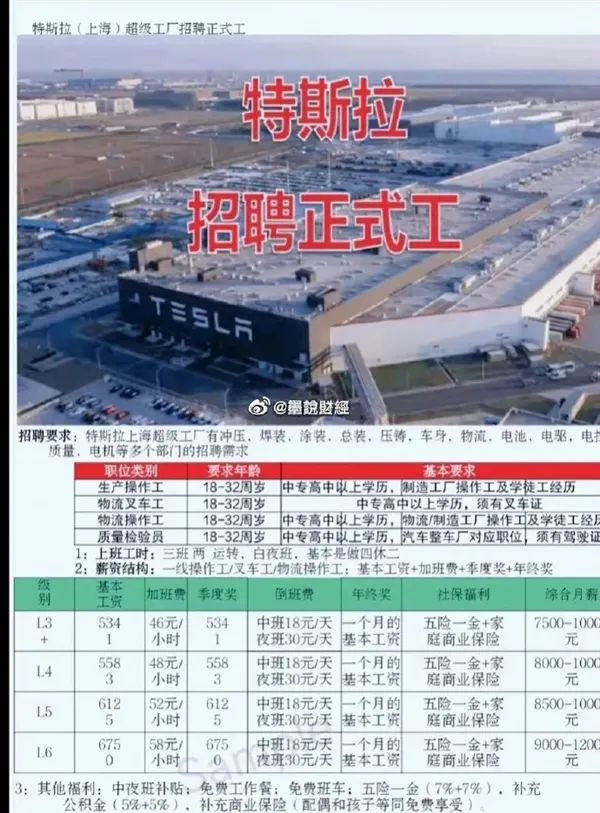有网友爆料称,有友商要特斯拉降低中国员工工资,从13000降到5341元。