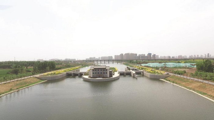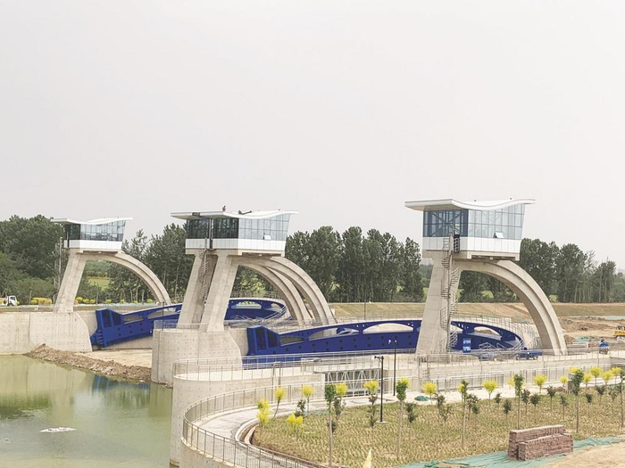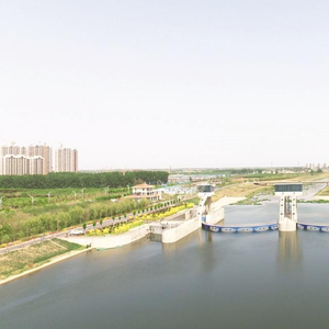 ◀支漳河分洪道综合治理水利工程东部排水防涝节制闸。