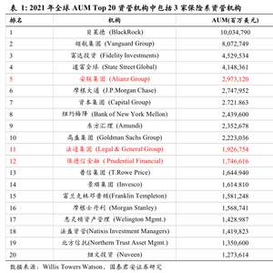 美国保险资管满足集团内保险资金的资产管理以及第三方机构和个人资金的财富管理需求。保险资管机构是全球大资管行业的分支之一,美国保险资管规模排名世界第二。美国保险资管核心满足集团内资金资产管理和第三方机构客户和个人客户的财富管理需求,其中集团内保险资金是美国保险资管发展的底盘,第三方资金增长较快,机构客户成为第三方资金的主要来源。