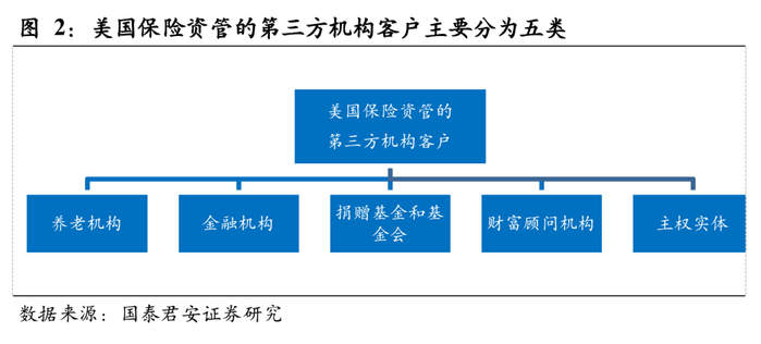 美国保险资管机构核心满足集团内保险资金资产管理以及第三方客户财富管理的需求。资金来源主要包括集团内保险资金、第三方机构客户资金以及第三方零售客户资金。