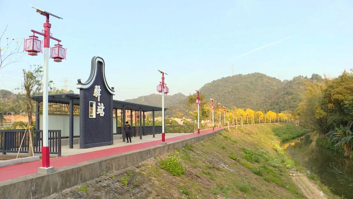 以碧道建设为“线”,以古朴村落为“珠”,文祠水碧道突出尊重自然,根据自然环境合理规划、设计,沿岸向老百姓开放滨水空间,在银潭村碧道出口还建设了驿站,进一步完善乡村基础设施,也促进了乡村旅游的发展,吸引不少游客前来游玩。