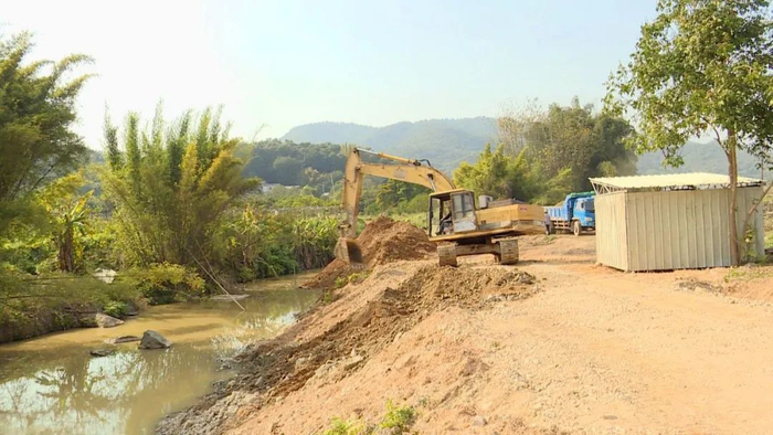 青山如黛,清流潺潺,文祠水碧道自石坑村蜿蜒而下,两岸水草丰茂。在一号桥施工现场,工人们正操作着挖掘机进行作业,不久后此处将搭设桥梁,贯通文祠水十里碧道。