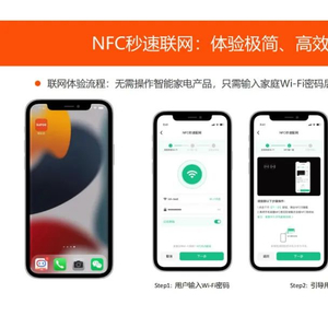 在日常生活中,“碰一碰”能更好地适应于人机近距离交互场景,该技术应用一方面不再需要用户触发产品进入配网模式,让配网体验更精简;另一方面,“碰一碰”通过NFC传递配网信息,让数据传输更可靠、更安全。