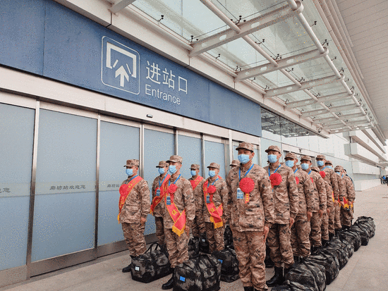 一身戎装去当兵,美好年华献军营,3月19日上午,廊坊高铁站,廊坊市449名新兵启程奔赴军营。