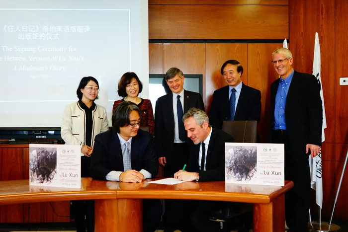 2019年4月,中国人民大学出版社以色列分社与以色列九命出版社(Nine Lives Press)联合举办《狂人日记》希伯来文版合作出版签约仪式。