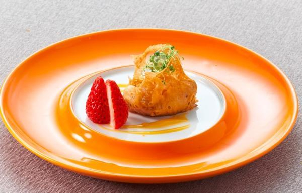 被誉为海洋“软黄金”的鲍鱼也受到了大厨们的青睐。上海老饭店豫园店新推出了“蜂巢麻辣一口鲍”。别看鲍鱼个头不大,味道却十分丰富。罗玉麟说,新鲜鲍鱼用秘制的麻辣卤料汁卤制约一小时左右,再煲制,如此一来,鲍鱼既保留了柔嫩口感,又增加了麻辣咸鲜的底味。挂糊炸制后的鲍鱼,像一个个金黄色的小福袋卧在盘中,旁边还配有当季的新鲜草莓,不仅吸睛,还能起到清口解腻的作用。