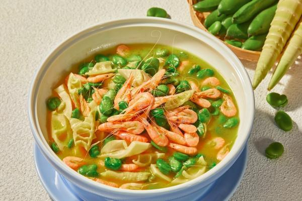 俗话说“一口春笋来,三月不知肉滋味”,上海德兴馆用春笋搭配蚕豆瓣、鲜虾,做出了别样的美味。春笋口感爽脆,与碧绿色的蚕豆瓣、橙红色的白米虾一起烹制,色泽丰富,鲜味不输腌笃鲜。