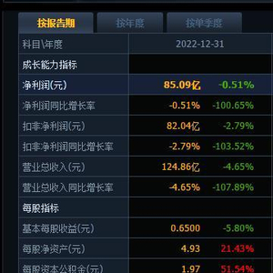 2022全年,公司实现收入35.59亿元,同比增长1.40%,实现归母净利润16.91亿元,同比下滑11.51%。