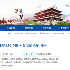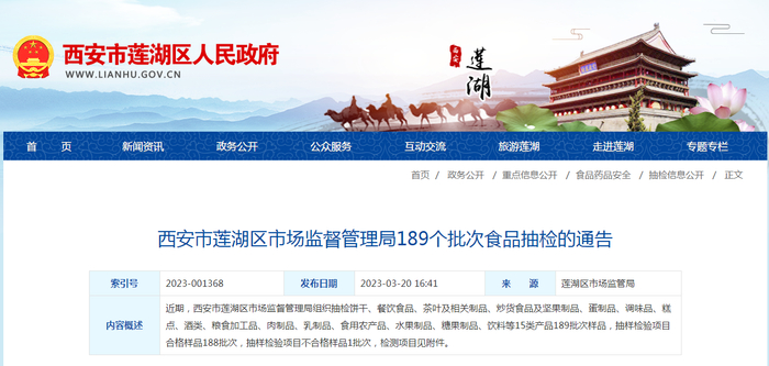 西安市莲湖区市场监督管理局抽检189批次食品 不合格样品1批次