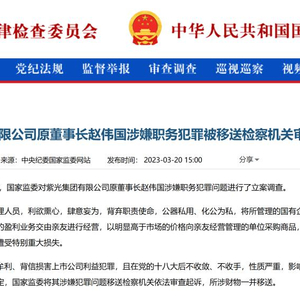 在被有关部门带走调查数月后,芯片大佬赵伟国传来了最新消息,被移送检察机关审查起诉!