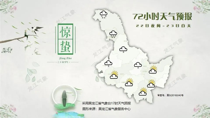 22日夜间到23日白天:大兴安岭南部阴有大雪,局地有暴雪,大兴安岭北部阴有中雪,黑河、伊春、齐齐哈尔多云有阵雪,其它地区晴有时多云。