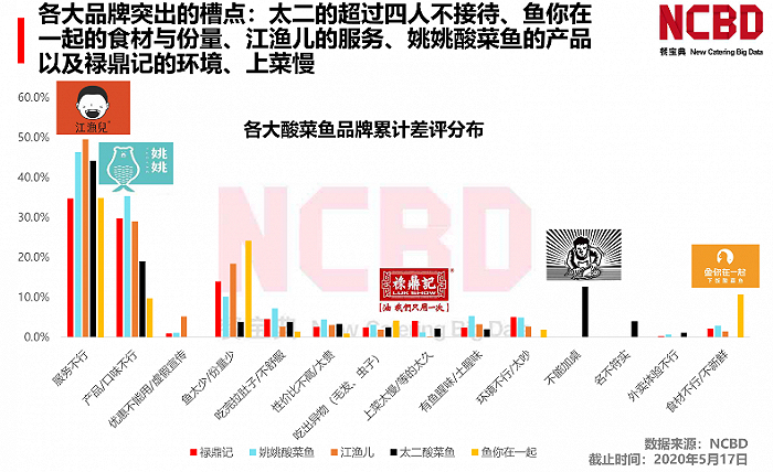 其中值得关注的是,在NCBD(餐宝典)2020年发布的酸菜鱼差评大数据分析与研究报告中,对于“门店用餐无法加桌”的吐槽在太二酸菜鱼的槽点中占比颇高。
