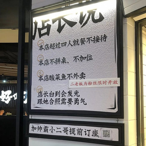 店长说的招牌还在店外墙上挂着,第一条明晃晃的写着:本店超过四人就餐不接待。