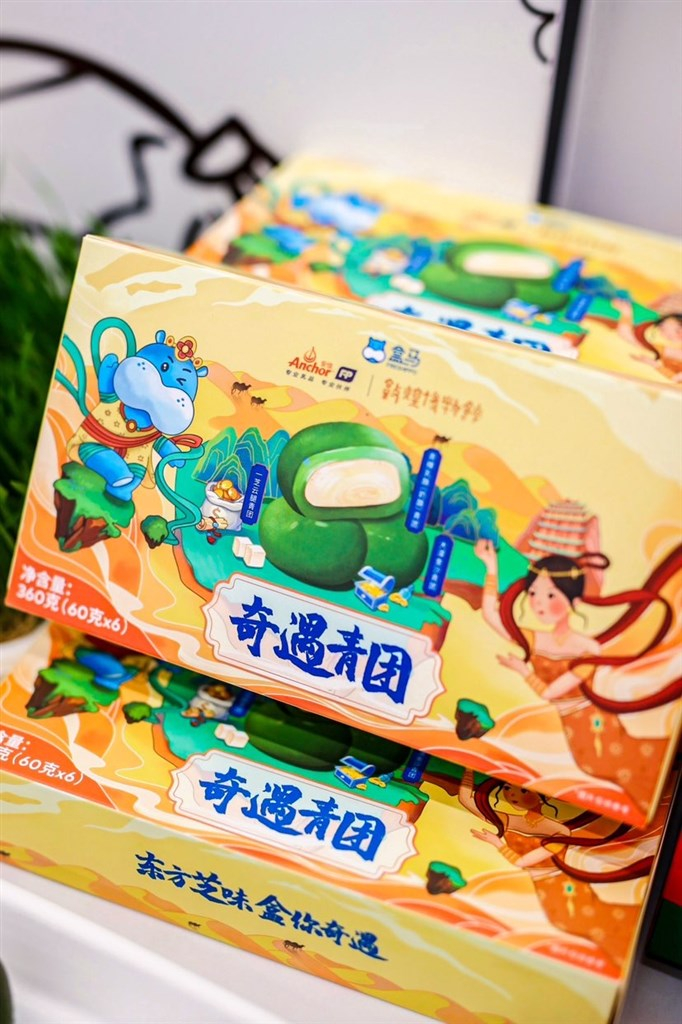 与敦煌、安佳推出青稞芝士奶茶口味青团,则将敦煌博物馆的IP与援藏青稞结合,包成一款南北口味相遇的青团,在济南、北京等北方城市颇受消费者欢迎。