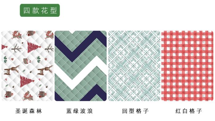 款式上也有非常漂亮的红白格子、蓝绿波浪、回形格子三色图案可选: