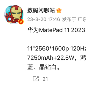 【平板】新款华为MatePad11配置曝光 骁龙870+22.5W充电