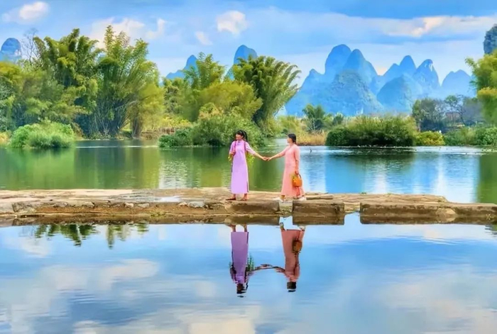 在阳朔,远离了都市的喧嚣,置身于青山绿水间,身心与灵魂都放松下来,人也成为了山水画的一部分。来阳朔,住进极致的山水里。