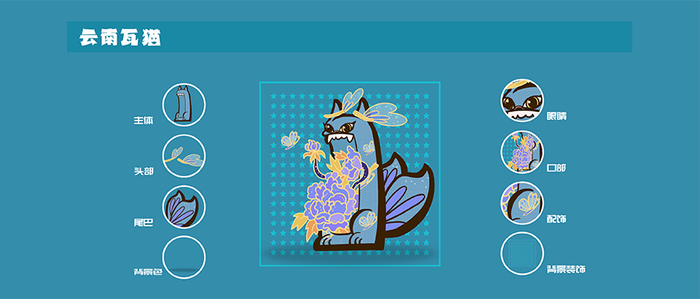 本次云南瓦猫“系列版权品共发行1500份,将使用手绘+编程组合的方式,确保每一只云南瓦猫都是独一无二的存在。每一份“云南瓦猫”版权品均包括主体、眼睛、口部、头部、尾巴、配饰、背景装饰、背景色等8个特征部位。每个部位随机组合,既保证了每只“云南瓦猫”都独具特点,又兼顾了不同个体之间的稀缺性,为“云南瓦猫”赋予了更多不同的个性表达。