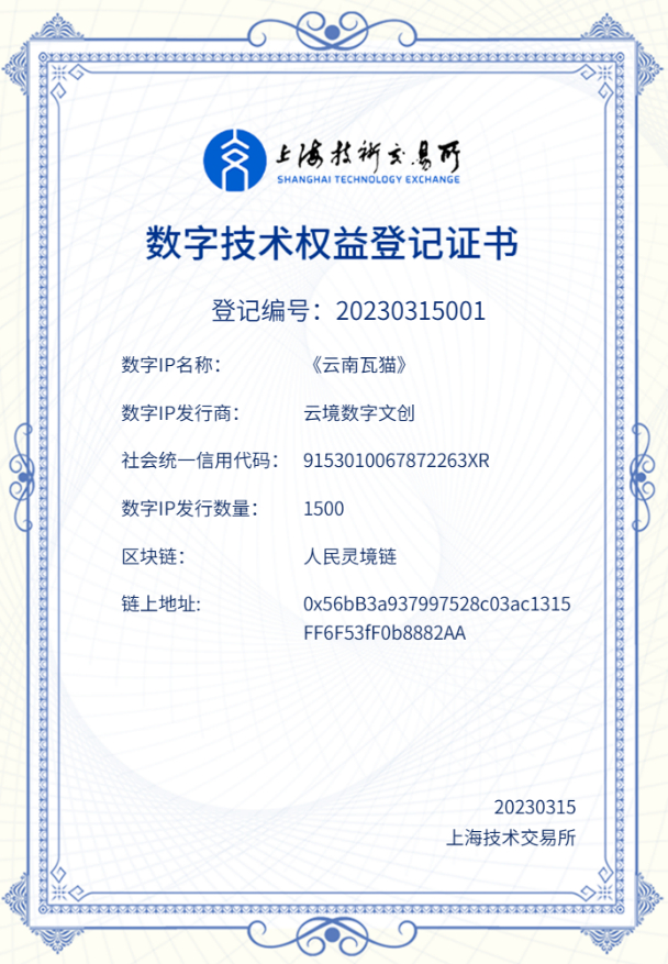 所有云南瓦猫版权品均在上海技术交易所数字IP专版备案登记。