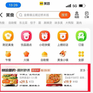 「蓝洞商业」从美团内部人士获悉,美团App「美食」页面下,新增「特价团购」banner。