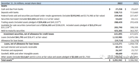 前财长、哈佛校长Larry Summers评价SVB犯了银行业中的小学生级别错误:借短投长。我不是银行业专家,不知道这么评价SVB冤不冤。但是比较一下资产负债表的成分,可以发现宇宙行JP Morgan Chase和SVB相比,是多么地稳健。
