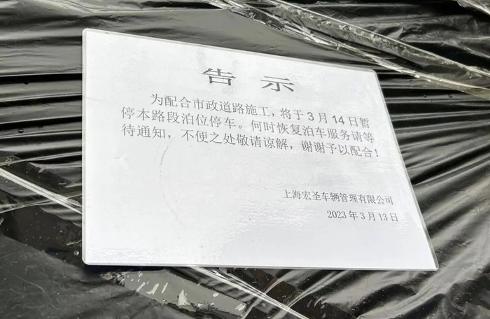 三月中旬,安福路靠近武康路的街边,原本的停车指示牌悄然被遮挡起来,转而贴着一张告示:“为配合市政道路施工,将于3月14日暂停本路段泊位停车,何时恢复请等待通知……”落款是上海宏圣车辆管理有限公司。该公司为徐汇区道路停车管理服务供应商。
