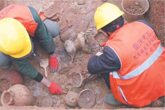 渝中老鼓楼衙署遗址、合川钓鱼城范家堰遗址先后荣获“全国十大考古新发现”,中国特色、中国风格、中国气派的考古学建设进一步深化拓展;巫山玉米洞遗址实证了从距今400000年延续至8000年的古人类演化序列;西南地区首个“考古中国”项目——“川渝地区巴蜀文明进程研究”深入实施,围绕涪陵小田溪、九龙坡冬笋坝、江津梧桐土遗址等考古工作,丰富了巴文化的历史厚度;开展古DNA分析、同位素检测等多学科研究,着力探索巴人族群特征,实证巴渝文化对中华文明的多重贡献;连续不间断地开展以合川钓鱼城遗址为代表的宋元(蒙)战争山城遗址群考古工作,为合川钓鱼城申遗提供强有力的助力。
