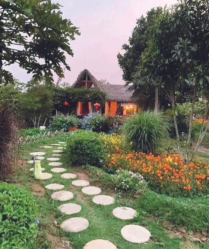 朱雪梅在小木屋周围种满鲜花