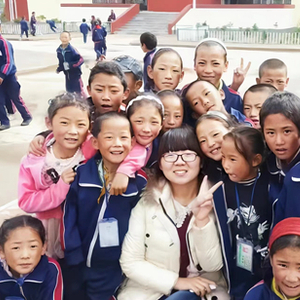 马晴晴在青海玉树支教时,与孩子们在一起。