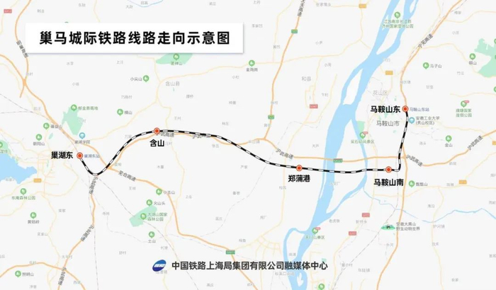 巢马城际铁路起于巢湖东站,向东经含山县、和县、郑蒲港新区、当涂县、经开区、雨山区、花山区后,引入马鞍山东站,正线全长61公里,设计时速350公里。沿线设巢湖东(既有)、含山、郑蒲港、马鞍山南、马鞍山东(既有)共计5座车站。