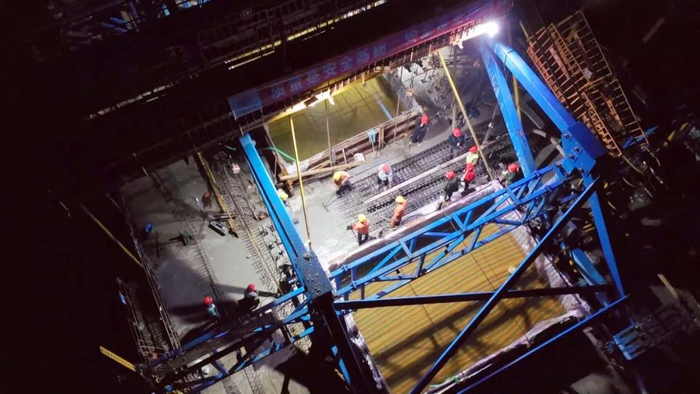 项目副经理 唐祖文:外环大桥(凤凰大桥)是本项目的重要控制性工程,项目精心组织、精细谋划,克服了单孔跨径大、安全风险高等诸多难题。主桥左幅中跨合龙段于21日凌晨0点至3点28分,顺利完成了混凝土浇筑。至此,主桥悬臂现浇梁施工全部结束,标志着主桥上部结构全部完成,将转入桥面系施工,工程进度取得重大突破。